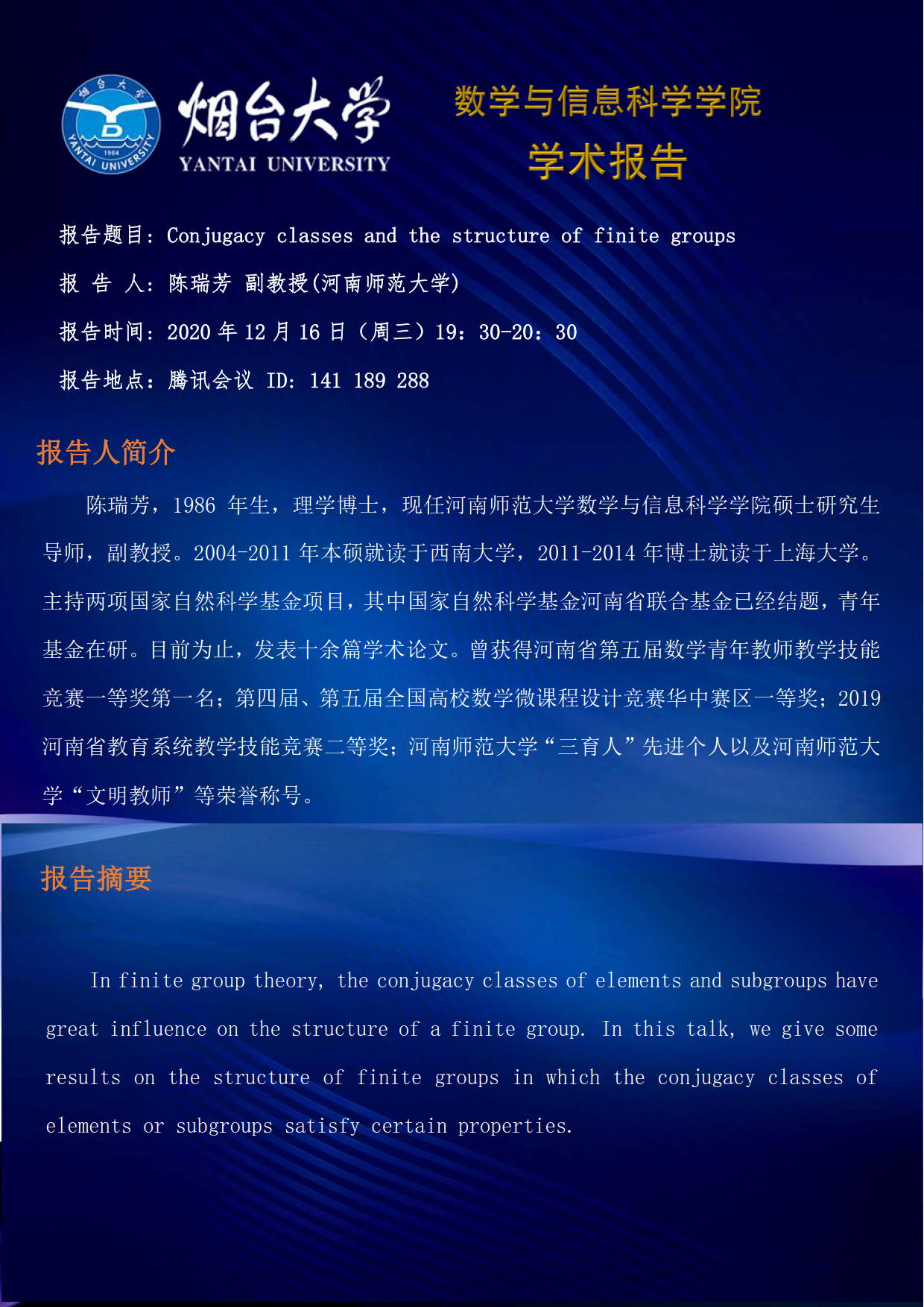 学术报告—陈瑞芳 副教授