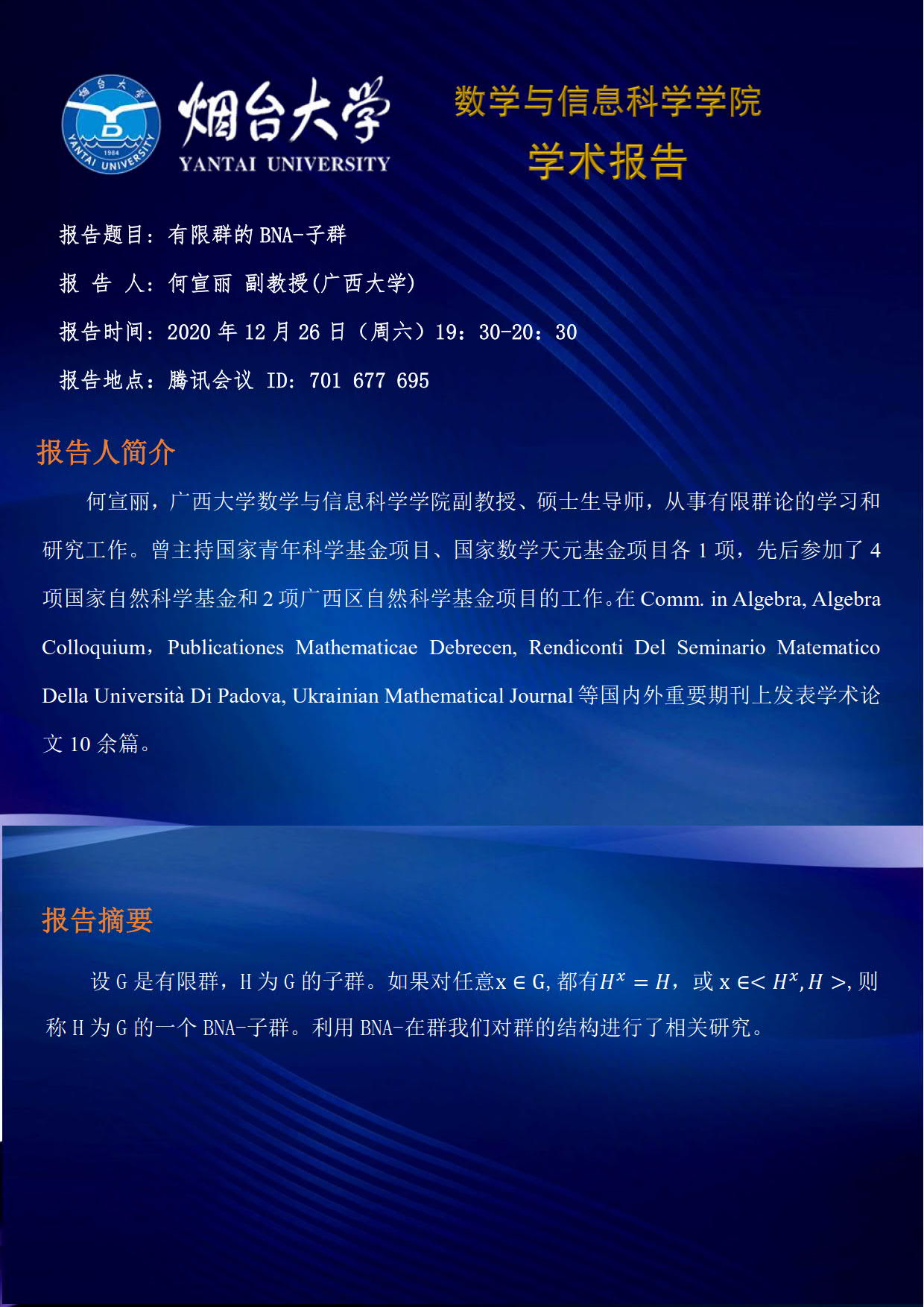 学术报告—尹居良 教授(广州大学)