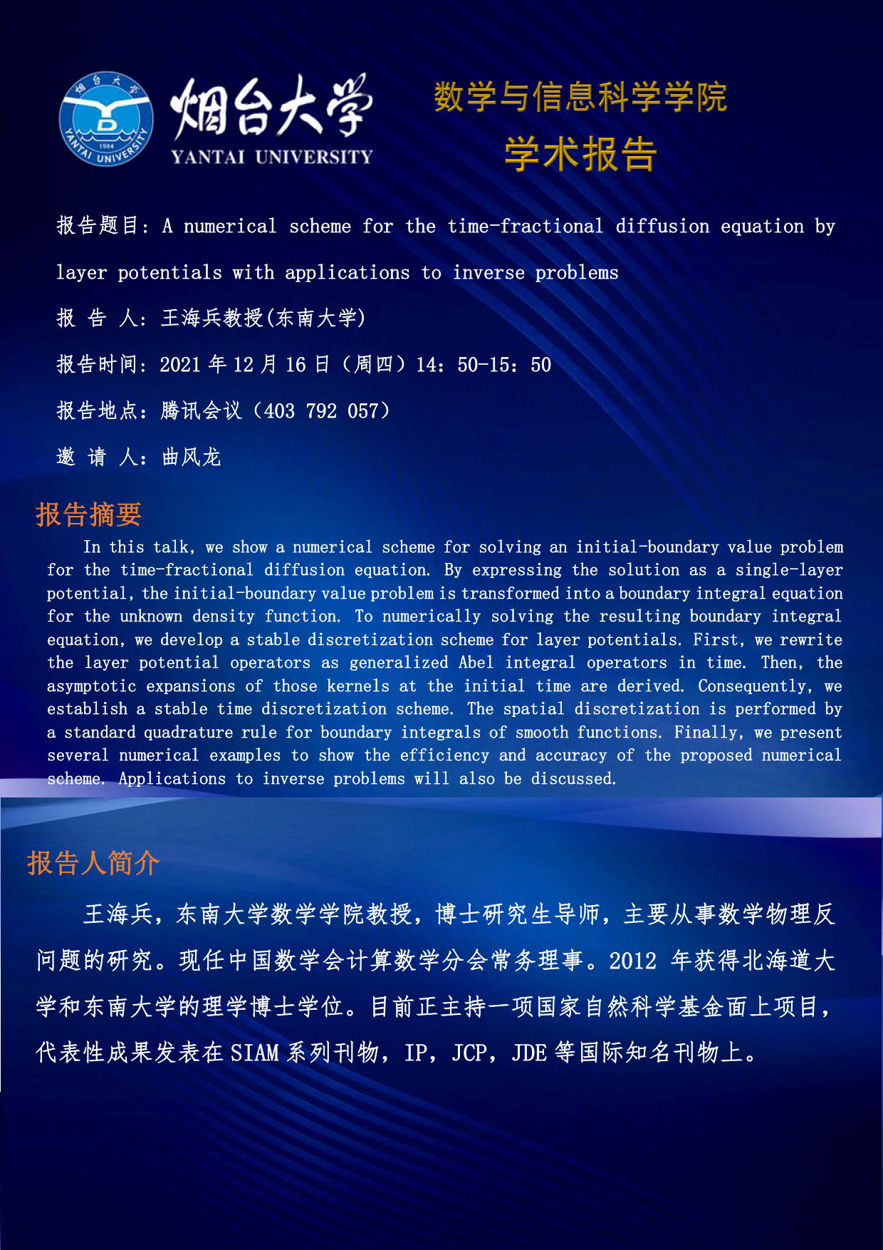 学术报告-王海兵 教授(东南大学)