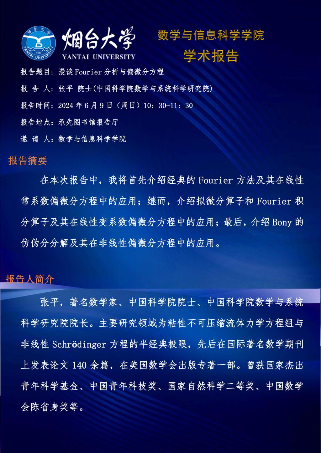 学术报告--张平 院士(中国科学院数学与系统科学研究院)—20240609
