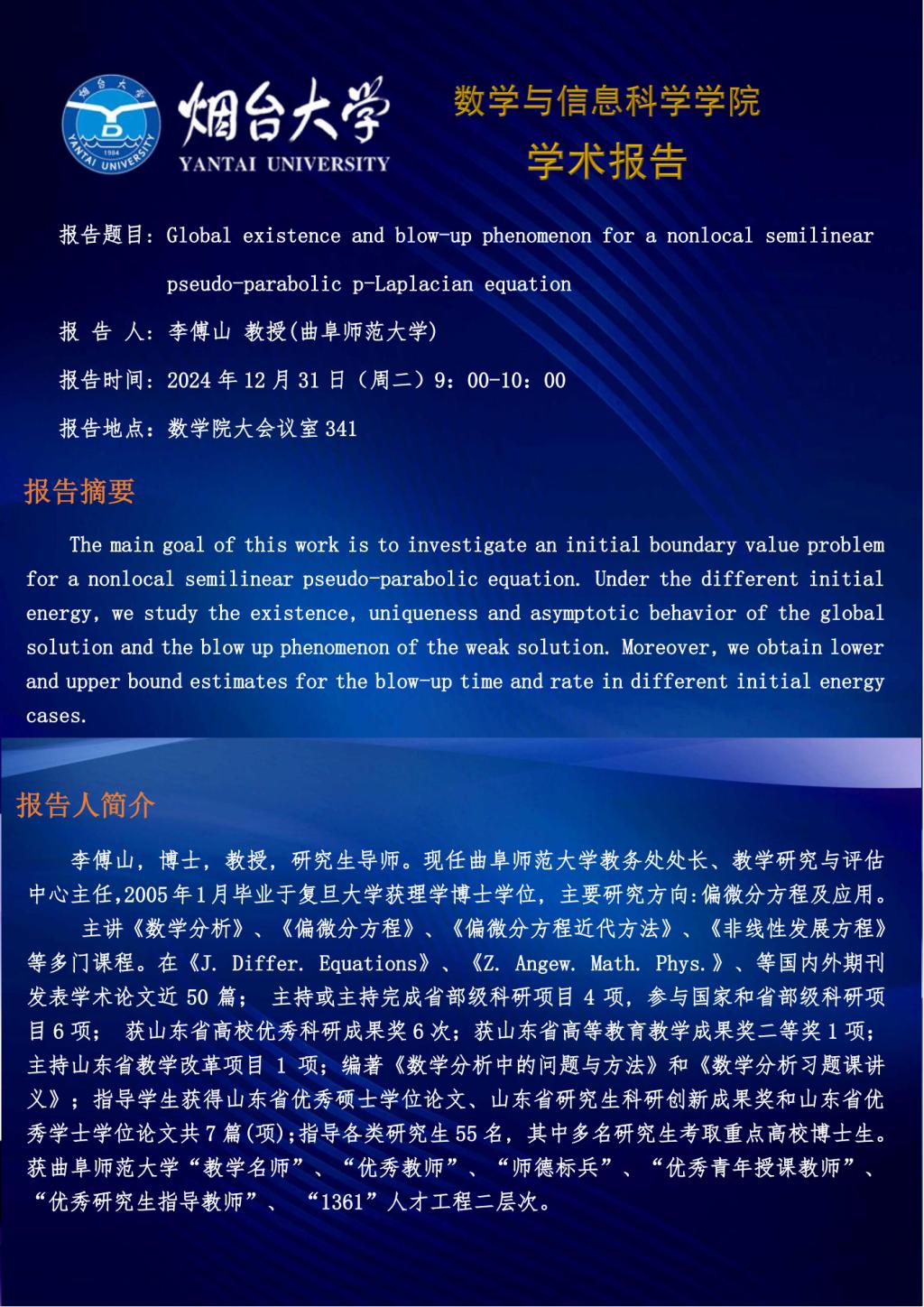 学术报告--李傅山 教授(曲阜师范大学)—20241231