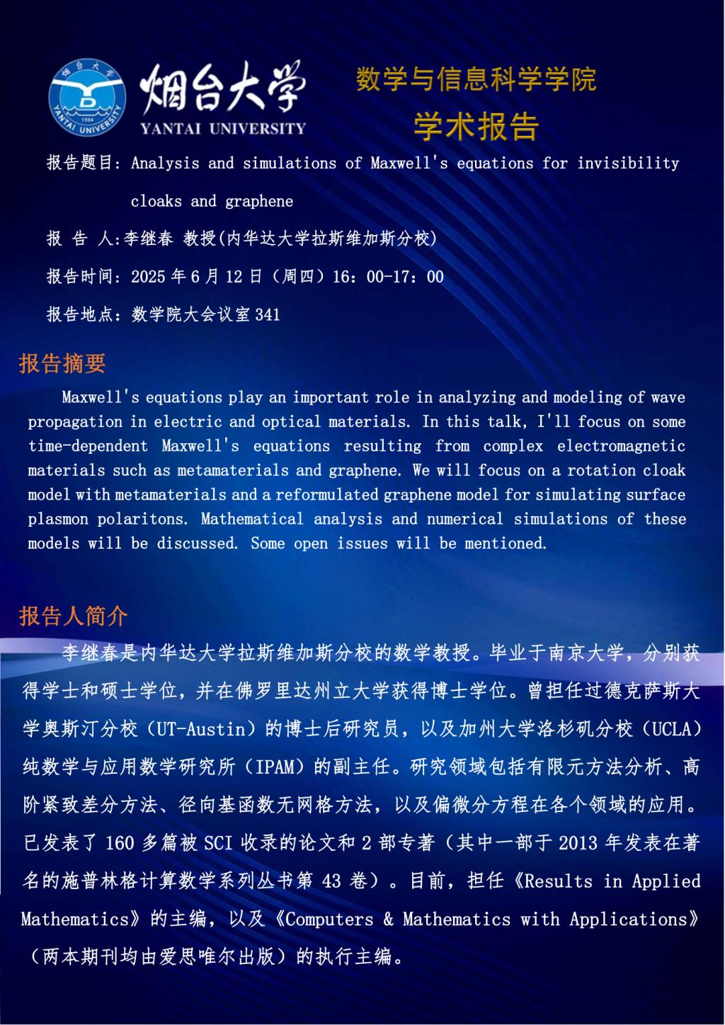 学术报告--李继春 教授(内华达大学拉斯维加斯分校)—20250612