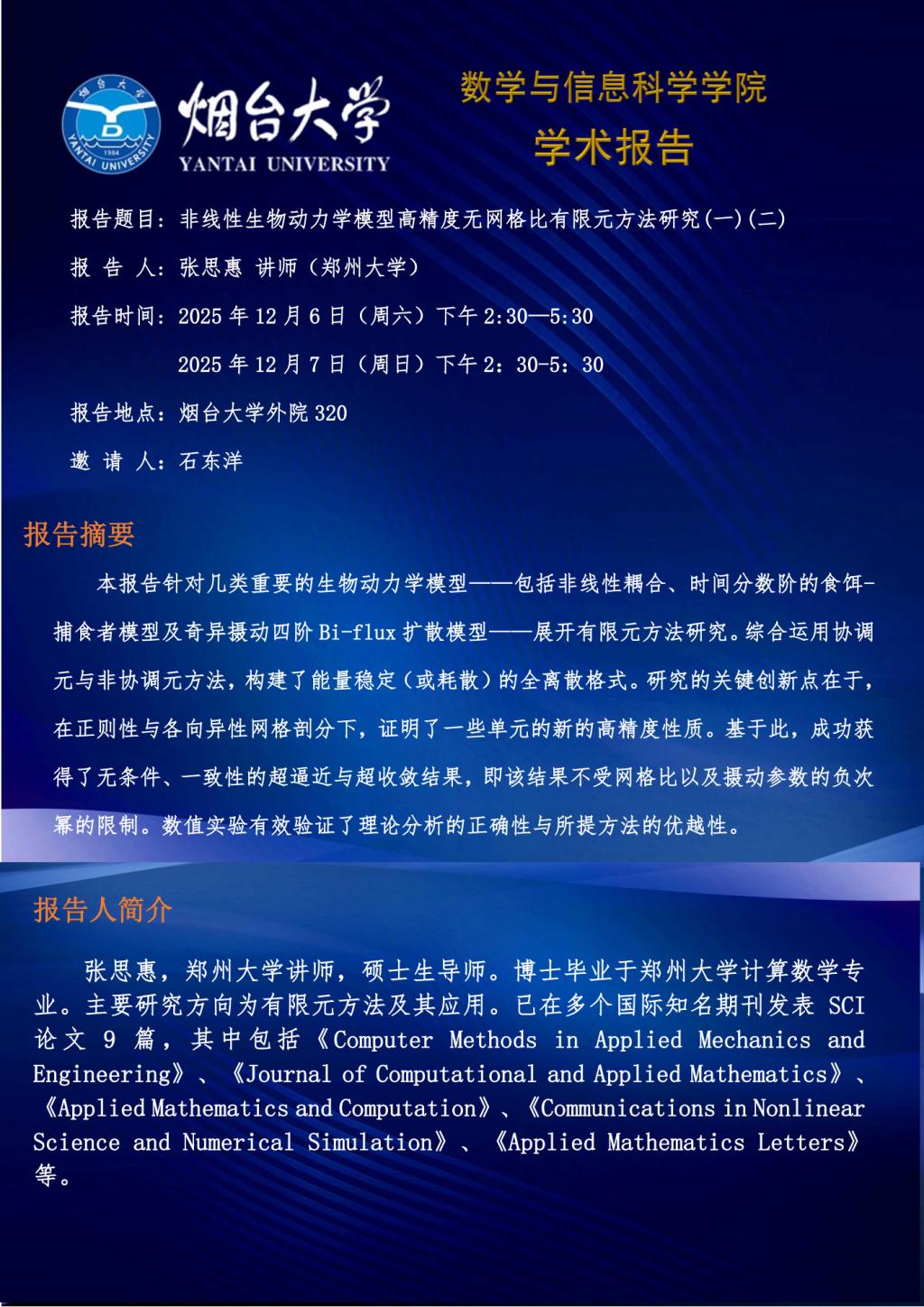 学术报告--张思惠 讲师(郑州大学)—20251206