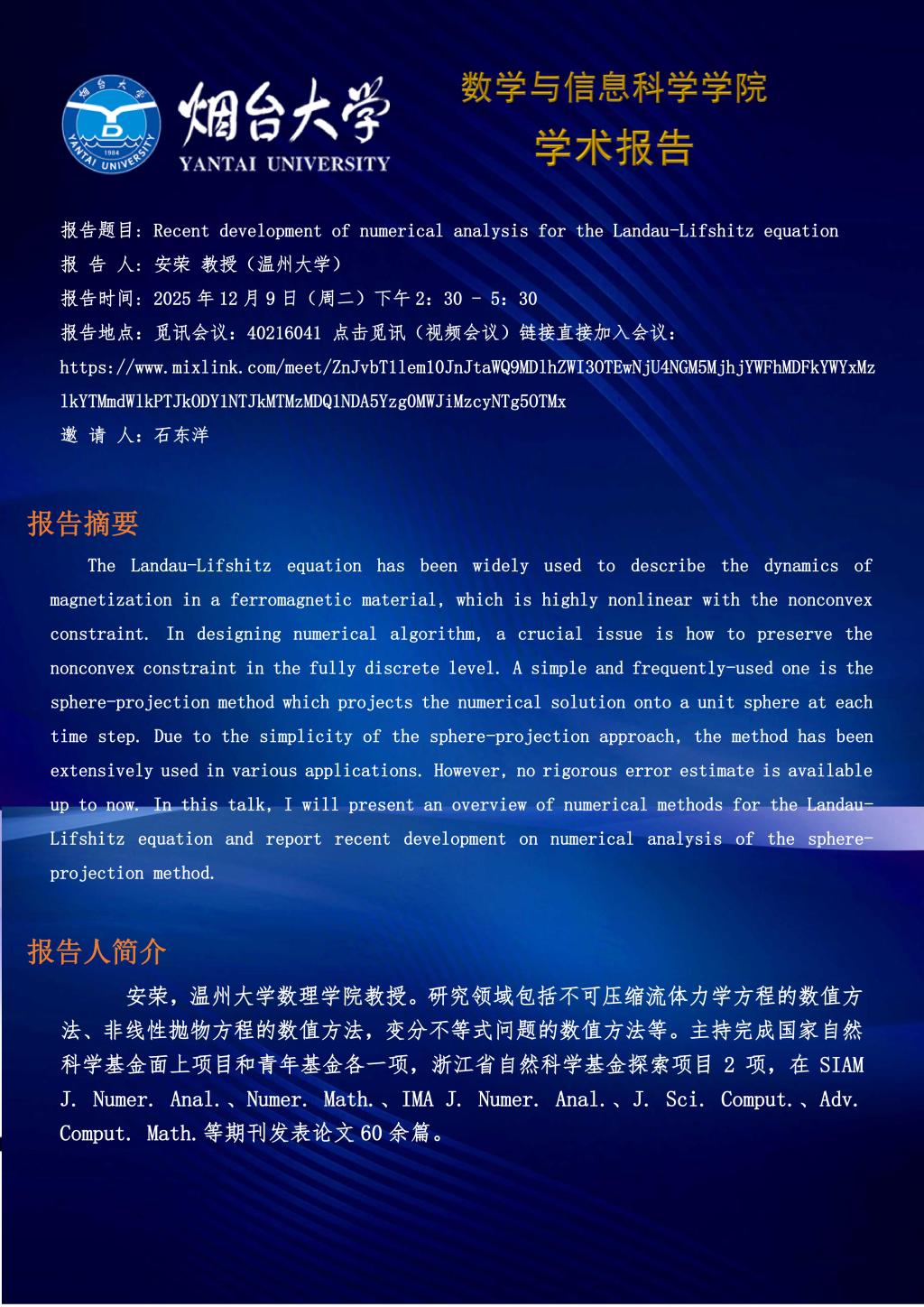 学术报告—安荣 教授(温州大学)—20251209