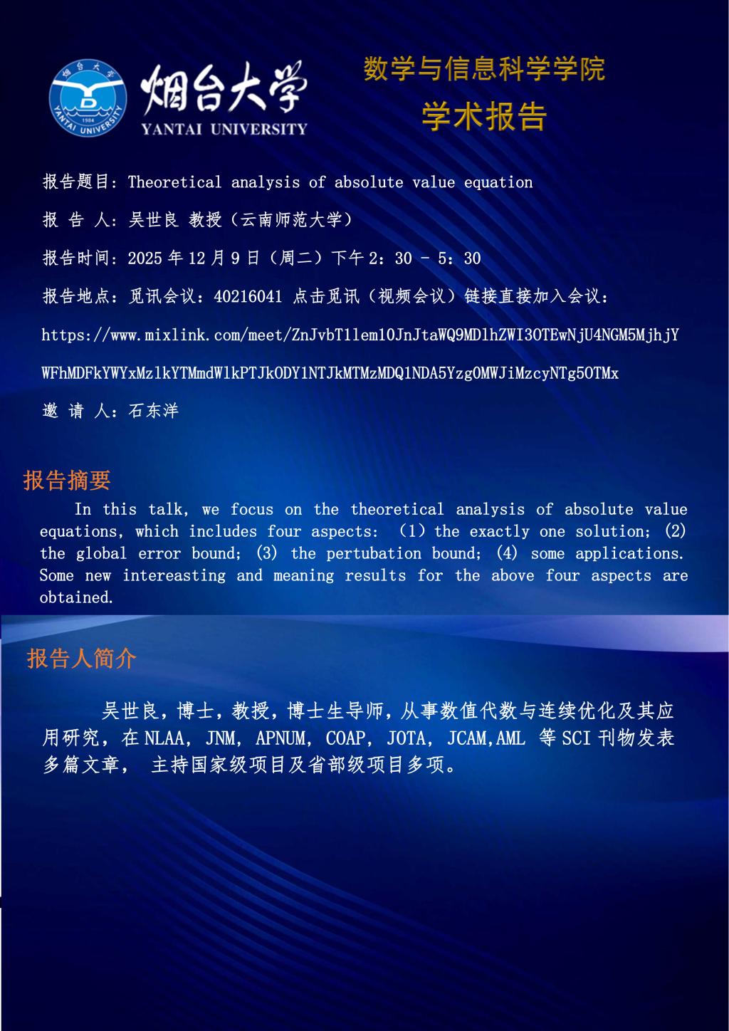 学术报告—吴世良 教授(云南师范华大学)—20251209