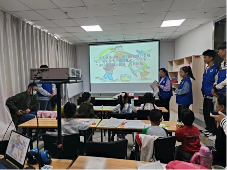 班级志愿者提前布置好活动场地,引领孩子们有序入座,并向孩子们介绍活动规则和流程。活动中,由志愿者帮助孩子们将报纸、杂志、以及其他书面来源的有关青春爱国的词语、短句剪贴下来,按照自己的灵感再创作,产生新的文字意义。参与的孩子们热情高涨,他们认真听讲,并发挥想象力和创造力,在志愿者们的帮助下完成贴纸。通过本次活动,孩子们不仅能够在创作中看到祖国的发展,能够在文字中感受到国家的强大,还能够在祖国的发展成就观察中增强民族自豪感,活动也在孩子们与志愿者们的欢声笑语中圆满结束。